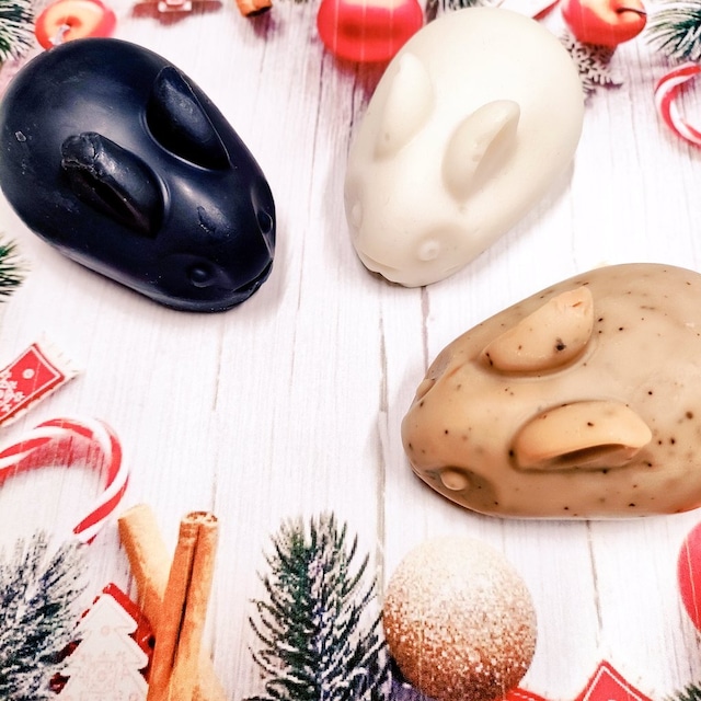 その香りひとつで香水だと言われるカルダモン、ユーカリの澄んだ香りが融合した贅沢な香りが特徴。 夜にひっそりとあなたに寄り添う「夜うさぎ」の香り。 【夜うさぎ石鹸の特徴】 ◼︎炭配合で、毛穴汚れや余分な皮脂をすっきり ◼︎洗い上がりはつっぱらず、しっとり ◼︎夜の洗顔・入浴に向いた、落ち着いた使い心地 ◼︎ひとつづつ丁寧に手作りした可愛いうさぎ型 \\ こんな方におすすめ // ◼︎一日の終わりに、気持ちを切り替えたい方 ◼︎夜のスキンケアを大切にしたい方 ◼︎強い香りや刺激が苦手な方 ◼︎自分だけの“静かな時間”を持ちたい方 - 竹炭のちから - 竹炭は、微細な孔を持ち、毛穴汚れや皮脂を吸着することで汚れを除去します。 合成界面活性剤のようにお肌に必要な皮脂まで強力に奪うことなく、優しい使い心地で洗顔できます。 夜うさぎ石鹸は、 肌の保湿に必要な油分を落としすぎないことを大切にしながら、一日の汚れをやさしくリセットします。 =============== 夜うさぎ石鹸の使い方 =============== 夜の洗顔に お風呂上がりのリラックスタイムに 一日の終わりの「切り替え」に 泡だてネットで丁寧に泡立てて、洗ってみてください。 夜うさぎが、そっと寄り添うように癒してくれます。 ⚪︎⚪︎ 贈りものにもどうぞ! ⚪︎⚪︎ がんばっている方への贈りものに おやすみ前の時間を大切にしている方へ 「お疲れさま」の気持ちを込めて 【原材料】オリーブオイル、水、ココナツオイル、水酸化Na、パーム油、カカオバター、ホホバオイル、竹炭パウダー、ローズマリーエキス 精油 ... カルダモン、 ユーカリラジアータ、和ハッカ、ジュニパー、ティートゥリー 【平均重量】90g ------------------------------ 今日を終える、その前に。 夜うさぎ石鹸で、 自分をやさしく労わる時間を。